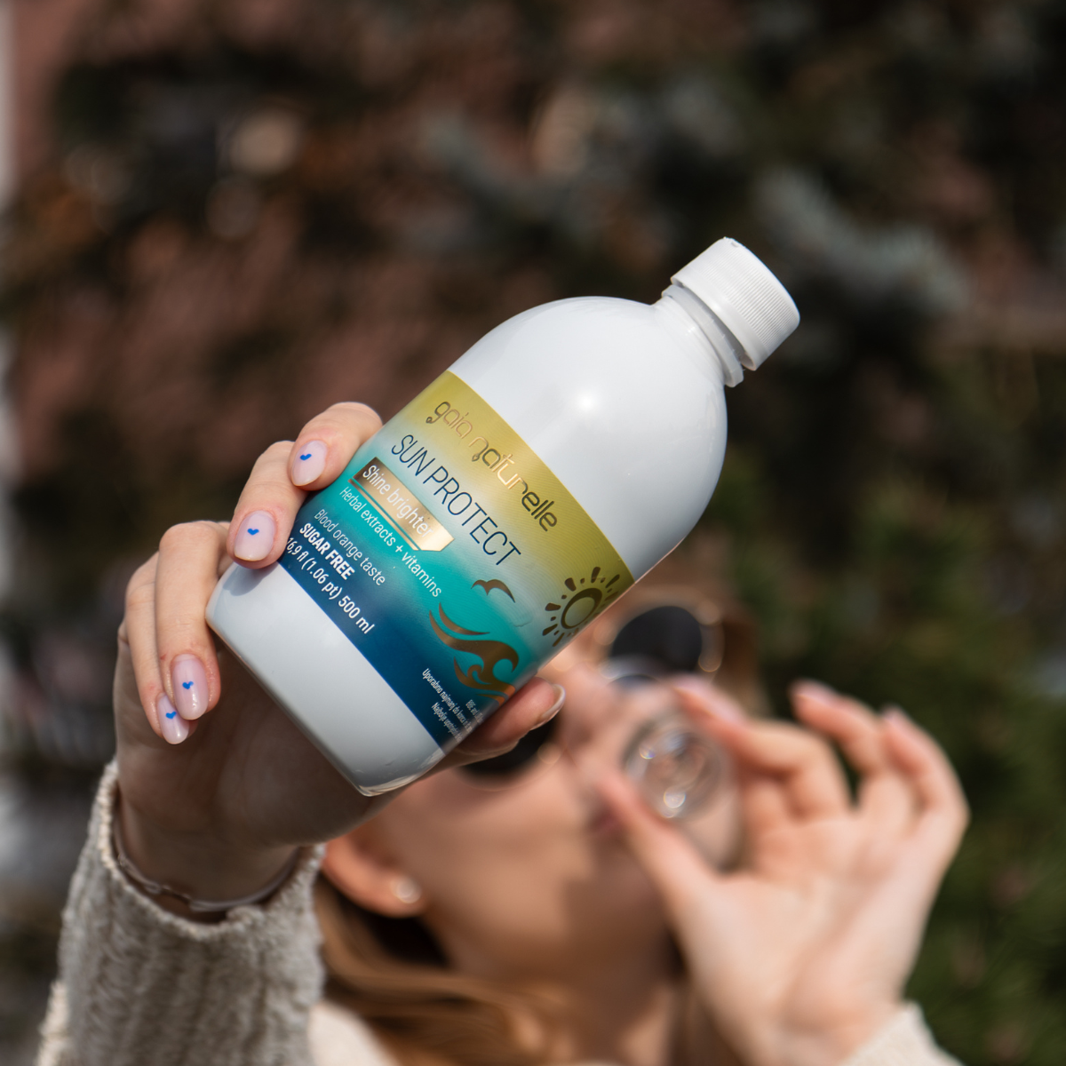 Sunbrella is a liquid food supplement with plant extracts and vitamins that helps protect the skin from external stressors.